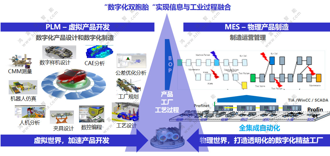 - 建立企業生產執行管理系統MES平臺,并基于PLM、WMS、SCM、ERP、MES,實現制造可視化系統集成,提供統計分析、訂單管理、工單管理、車間現場管理等核心功能,主要實現質量策劃、過程檢驗、判定處置、追溯分析的全過程質量管理;精細化的全程物流集中管控,加快物流、減低庫存,提高物料管理的精度和效率,使生產系統融入PDM、ERP系統相關的應用環境。